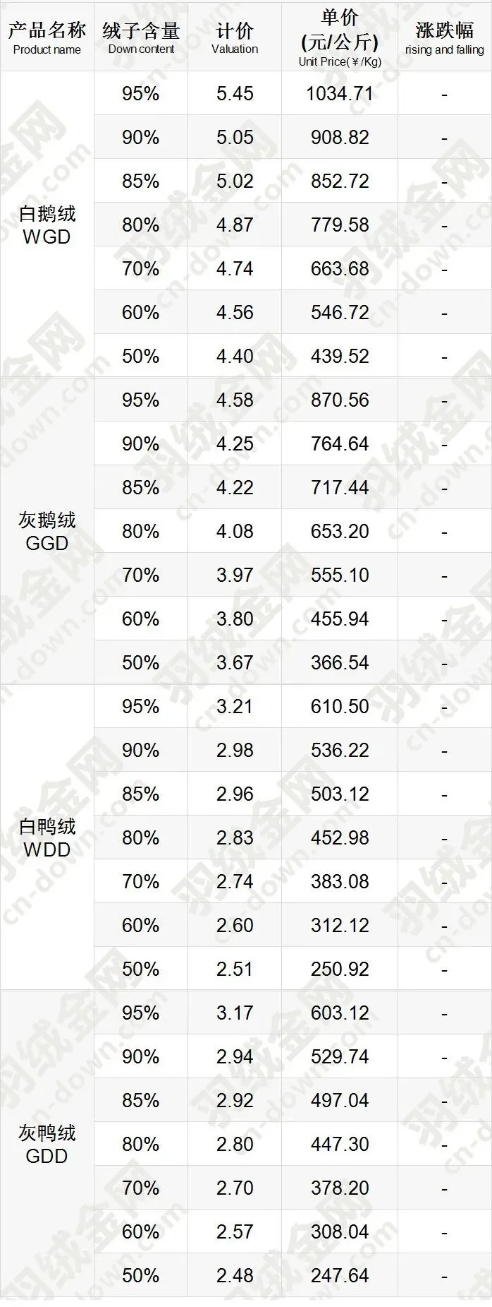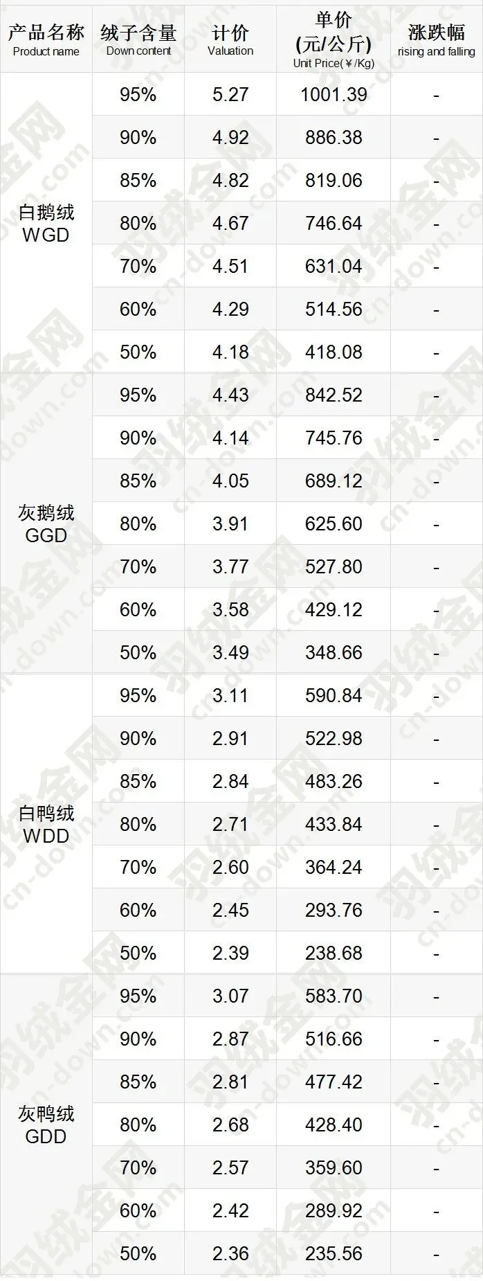 《挥七轩》2026年1月18日羽绒价格行情