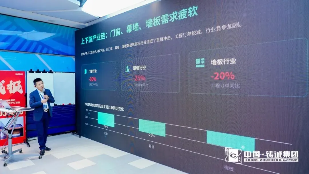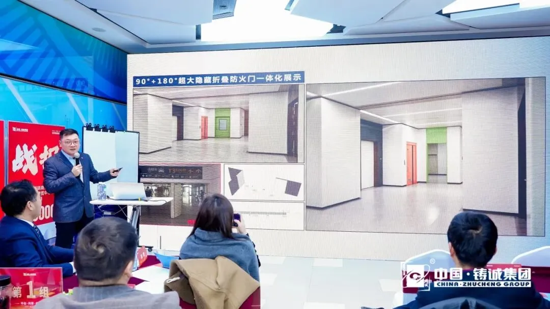 在产品体系上,他详细介绍了集团覆盖门类与装配式内装的完整矩阵,门类涵盖场景化钢制门、防火门等四大系列,其中防火门凭借高额研发投入与多项国际权威认证,可满足超大尺寸多元安全需求;装配式内装体系则以多形态墙板适配不同场景,并通过门墙一体化、超大隐藏防火门等创新体系,实现毫米级安装精度与高效施工优势。此外,他还提及集团“4F体系”,以一体化设计、工厂化智造等核心,搭配专业设计工程团队的全周期服务,为客户精准优化资金收益。