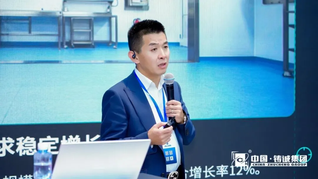 随后,北京铸诚建筑装饰工程有限公司总经理贾总以“共盈方法论破局行业困局,双轮驱动开启2026新征程”为主题,分享企业战略布局与市场破局之道。他结合多年行业深耕经验指出,在经济增速放缓、竞争加剧的当下,唯有以技术创新为核、生态合作为翼,才能于变局中寻新机,而铸诚独创的“共盈方法论”,正是从实业制造向生态系统平台升级的核心逻辑。