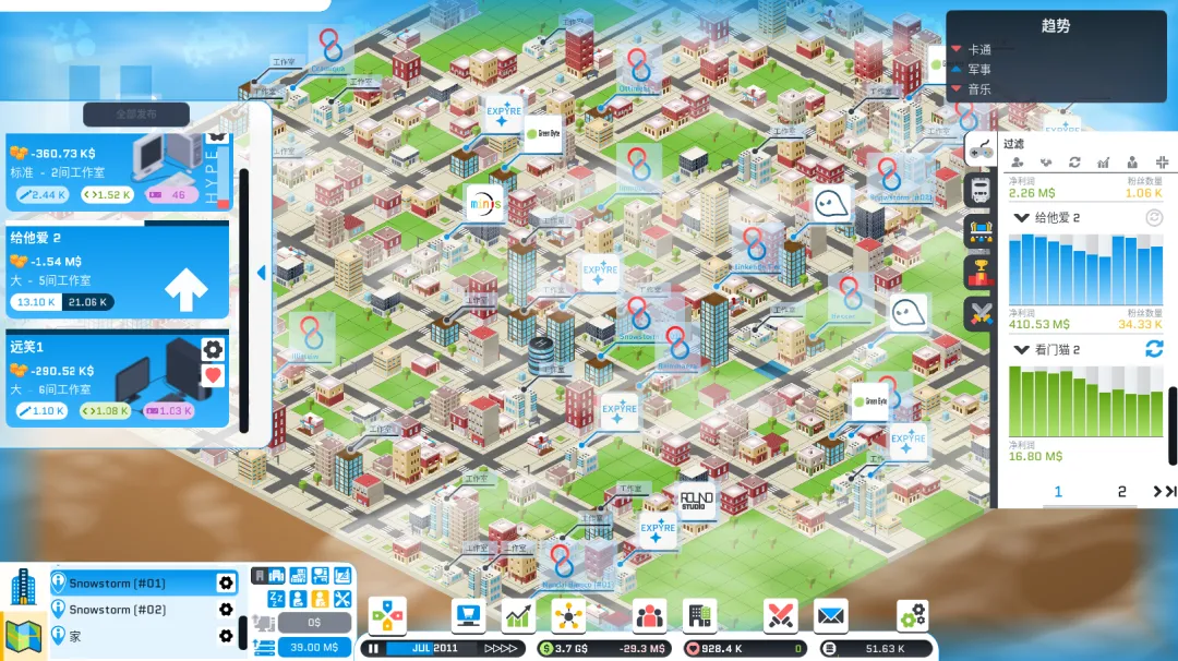 除了玩家们最熟悉的那个“用来玩”的游戏,《游戏大亨:都市工作室》在一条行业发展的时代主脉下,不断延伸出一串完整的行业全管线,让玩家能真正沉浸到一个无比真实的游戏世界。