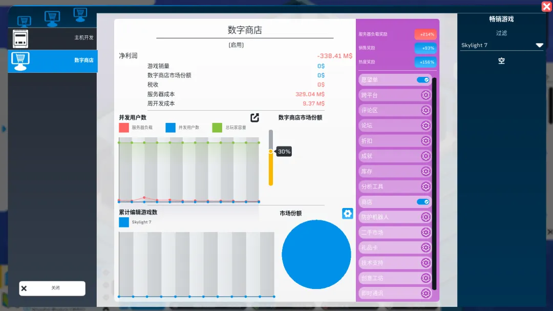 如果真实世界剧本,是帮助你了解游戏发展史,熟悉“游戏业”老炮们的入门书,那《游戏大亨:都市工作室》模拟玩法面面俱到的精细程度,可以真正帮你接触并初步了解游戏策划、游戏开发、游戏发行、游戏营销、游戏运营、游戏社区、游戏媒体、游戏写作、游戏活动(服务型活动和线下展会活动)、游戏商城、游戏数字分销,甚至是工厂里某一个游戏机的电子元件,涵盖了你能想到的有关“游戏”的方方面面。