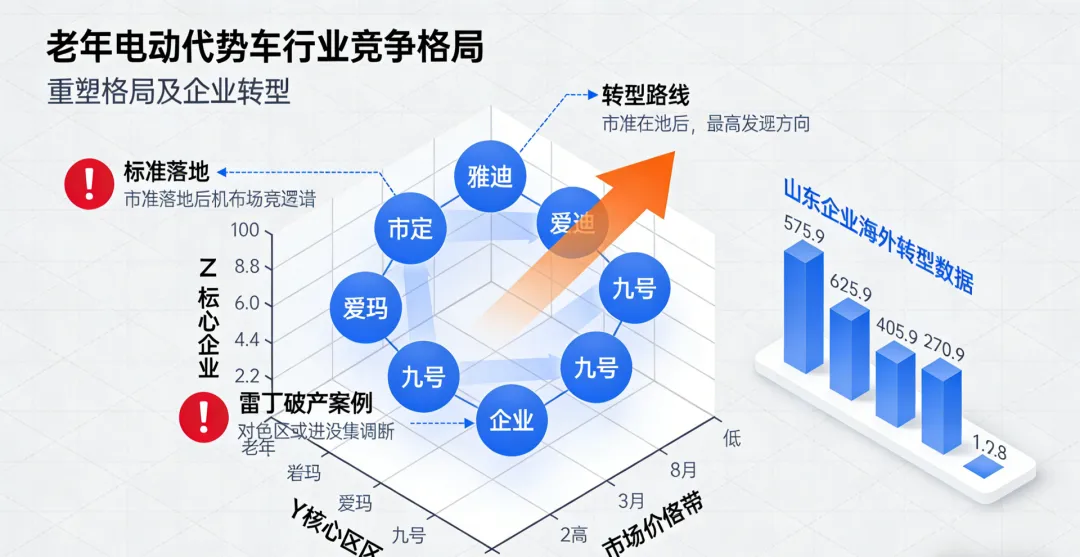 安全标准落地推动行业洗牌,中小作坊式企业加速退出,传统车企与头部两轮车企业抢占合规赛道。此前“老头乐”头部品牌雷丁汽车因无法适配合规要求申请破产,而吉利、比亚迪、五菱等传统车企凭借供应链与制造优势,推出符合标准的微型低速电动车;雅迪、爱玛主导4000元以下中低端合规代步车市场,九号凭借智能化优势领跑4000元以上高端市场(数据来源:证券日报《昔日“老头乐”销冠雷丁汽车申请破产传统车企竞逐微型电动车市场》、界面新闻《2025年中国两轮电动车行业研究报告》)。部分企业转向海外市场寻求突破,如山东永利新能源车业转型生产高尔夫球车出口美国,2025年预计出口1万辆,实现销售收入7000万美元(数据来源:中国新闻网《山东“老头乐”变身高尔夫球车“驶进”国际市场》)。截至2025年Q3,合规老年电动代步车市场份额已达62%,较2024年提升28个百分点,行业集中度显著提升。