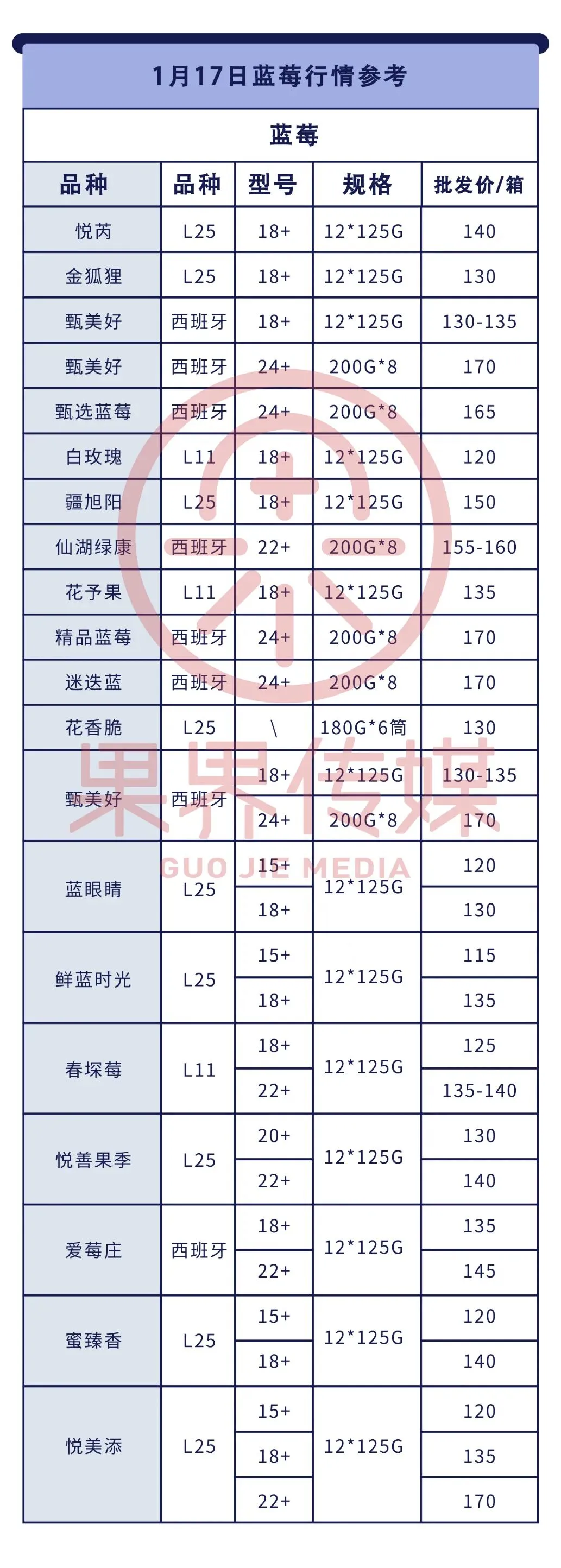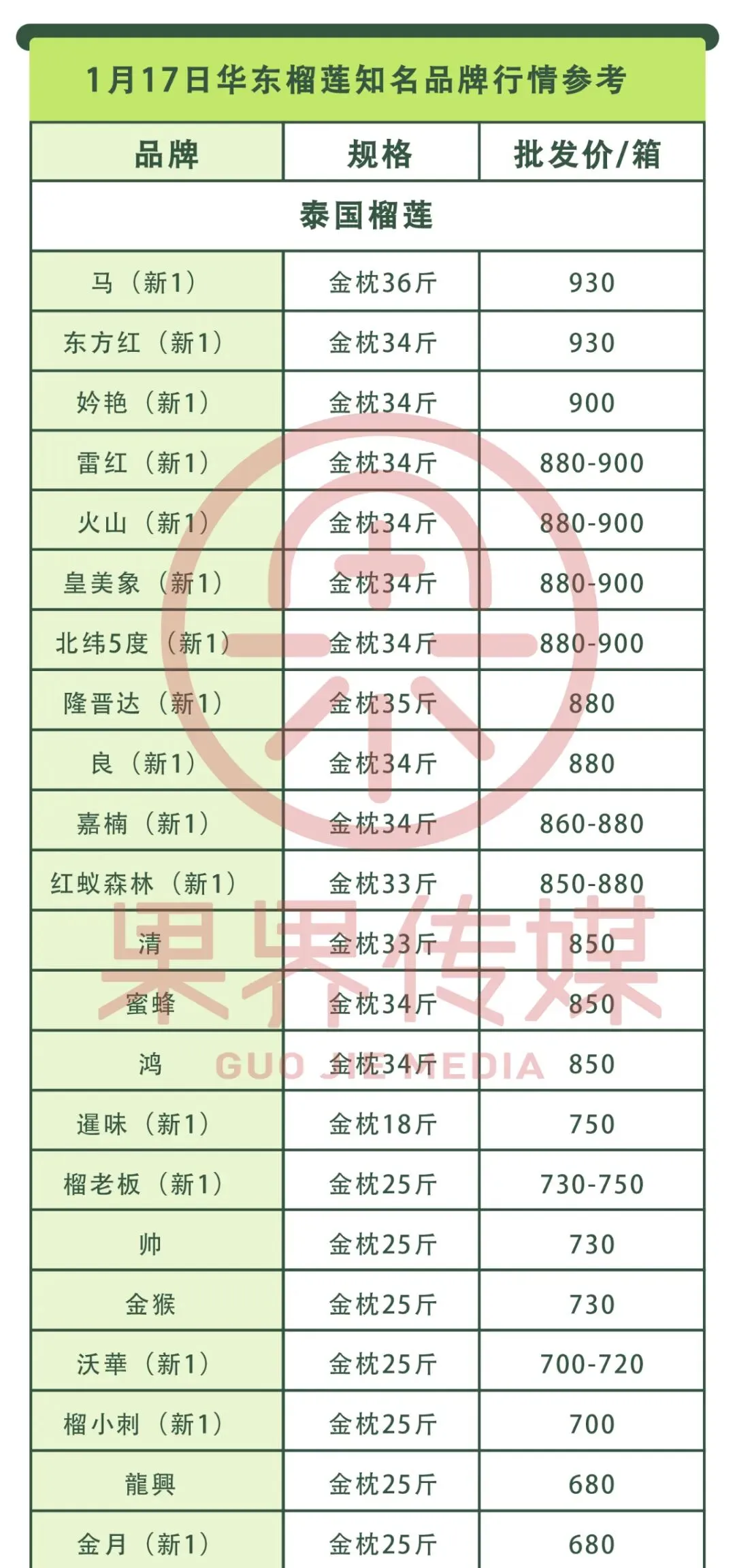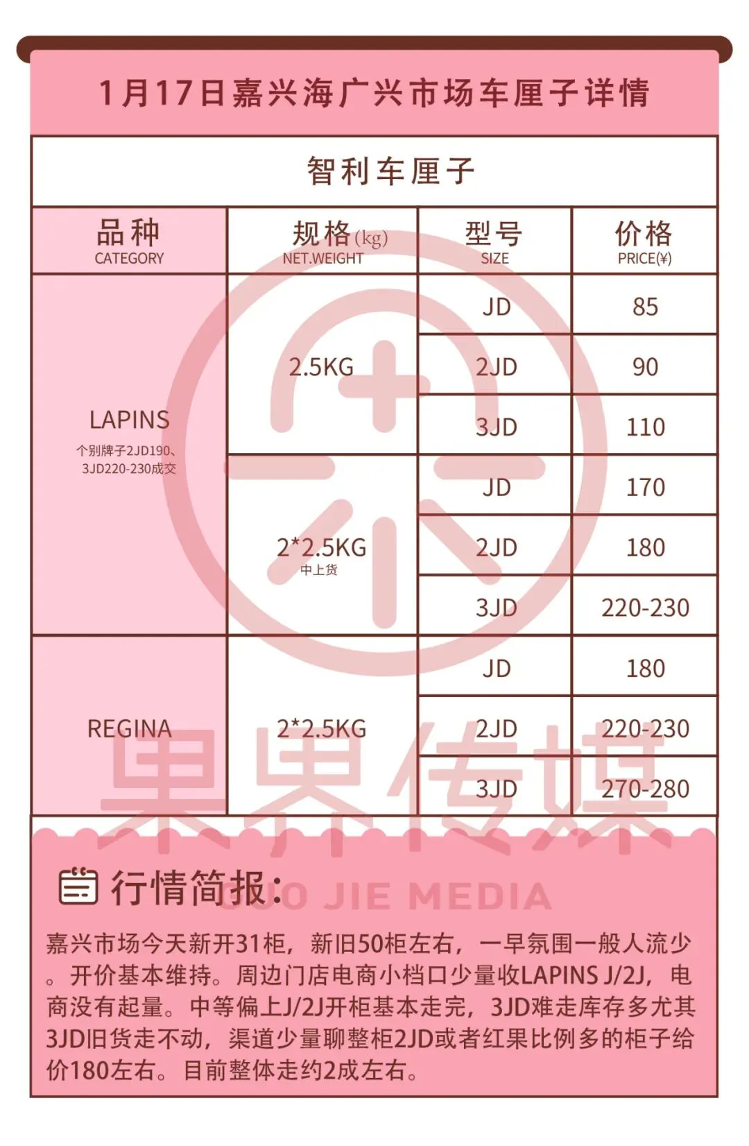 1月17日果界传媒华东一级市场每日水果行情