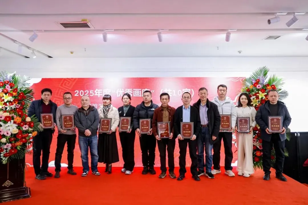 会上还表彰了2025年“艺术传播贡献先进单位”“十佳画廊”“优秀画廊”。