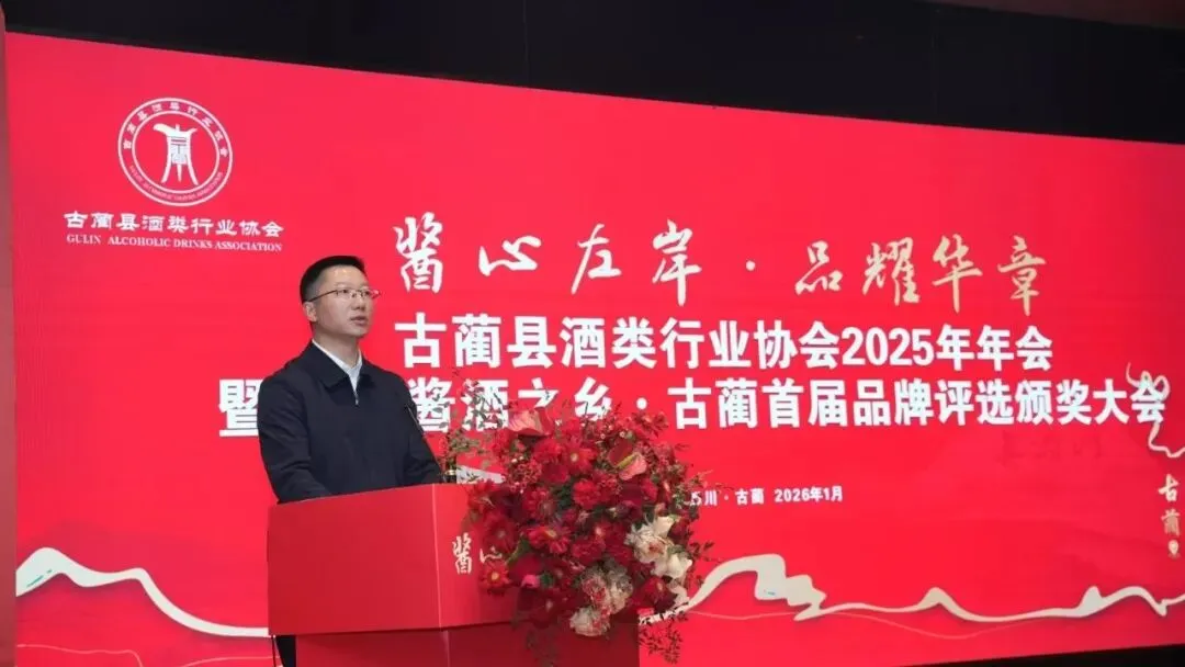 2026年1月16日下午,古蔺县酒类行业协会2025年年会暨中国酱酒之乡·古蔺首届品牌评选颁奖大会顺利召开。本次大会以“酱心左岸·品耀华章”为主题,回顾总结过去一年产区发展成果,揭晓首届品牌评选结果,擘画未来蓝图。省、市、县有关领导、行业协会会长、副会长及会员单位负责人、产区企业代表、特邀嘉宾及友好协会代表等约150人齐聚一堂,共襄盛会。