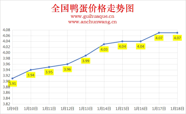 >2026年1月18日全国鸭蛋价格涨跌表
