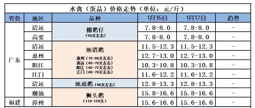 2026年1月18日樱桃鸭种蛋价格