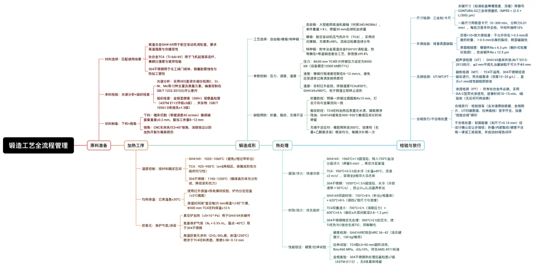 拆解完各个环节,我们梳理出标准化的锻造全流程示意图,并总结核心控制参数,方便你直接参考应用: