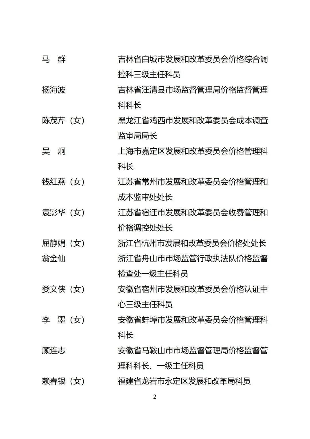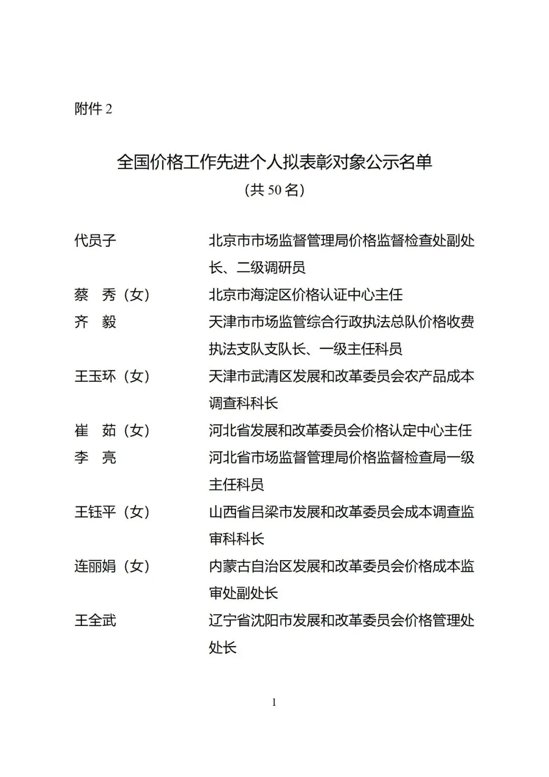 2.全国价格工作先进个人拟表彰对象公示名单