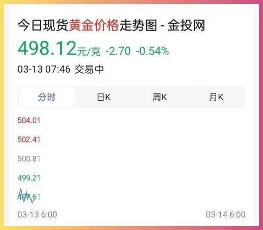 现在这个情况,已经买了的,要么死扛着等金价回暖,要么赶紧止损。我老公琢磨半天,决定先留着,反正戒指也能戴,说不定哪天金价又涨回来了。但说实话,我觉得悬,这波跌势估计还得持续一阵子。