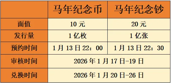 本次兑换周期为1月20日至26日,藏友需提前备好现金与证件,避免耽误兑换。 具体兑换规则明确:马年纪念币面值10元,预约成功的藏友需携带200元现金;马年纪念钞面值20元,对应需准备400元现金。