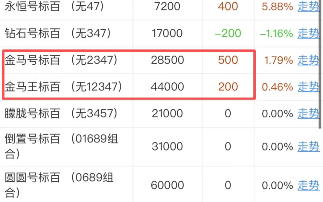 相较于马钞的波动,马年纪念币价格表现稳健,始终稳定在14.5元/张左右,溢价空间温和。 真正引爆市场的是马钞的号码玩法,今年不仅新增多种细分品类,不同号段的价值差异更是悬殊,堪称“号码为王”的收藏元年。其中,金马号(无2、3、4、7数字)与金马王(无1、2、3、4、7数字)两大品类溢价惊人,成为藏家争抢的核心。 据最新市场报价,金马号单张现价420元,相较于20元面值溢价高达21倍;金马王单张更是飙升至900元,溢价幅度突破45倍,刷新同类号码藏品的溢价纪录。整刀(100张,即标百)藏品价格同样亮眼:金马号标百现价31000元,相较于2000元面值溢价15倍;金马王标百报价44000元,溢价超20倍,价格远超传统热门的倒置号藏品。
