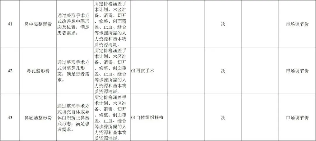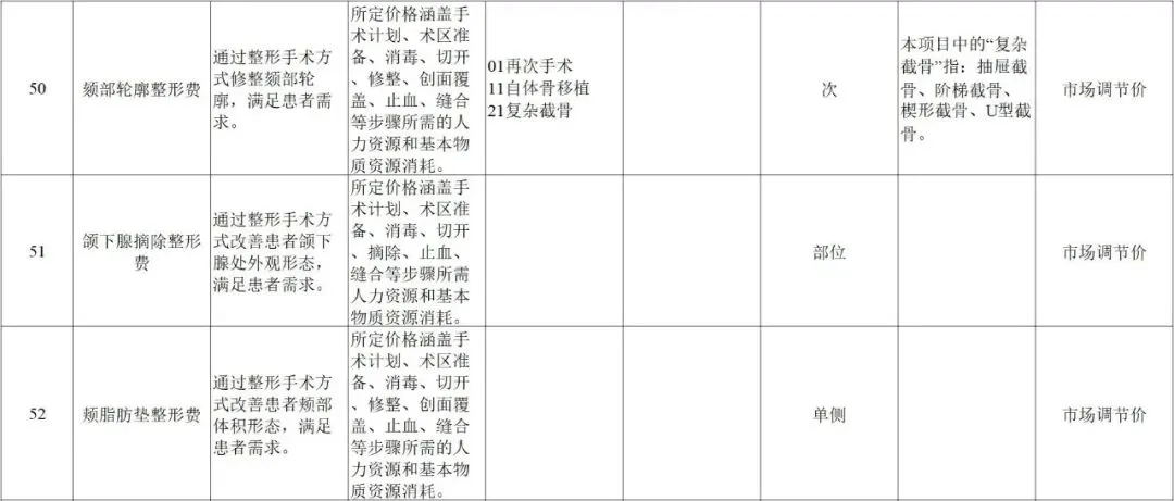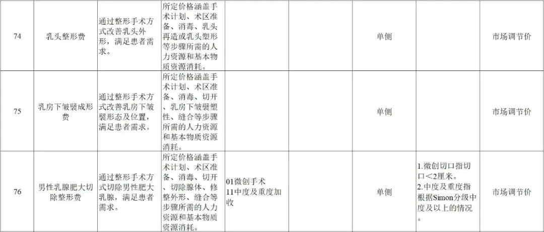 规范整合后共101项美容整形类医疗服务价格项目,实行市场调节价管理。