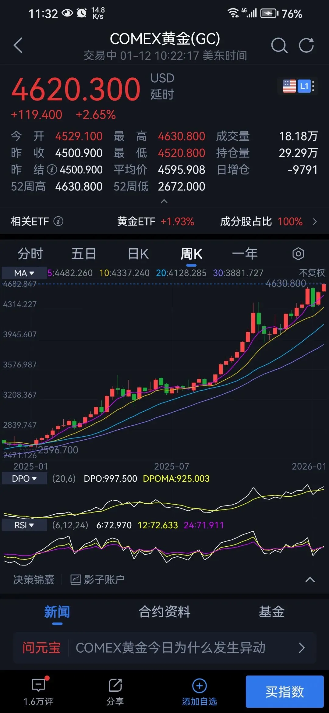私人投资者也在疯狂买入黄金ETF和实物黄金,市场对美元的避险需求几乎为零,转而寻求“硬通货”保护财富。