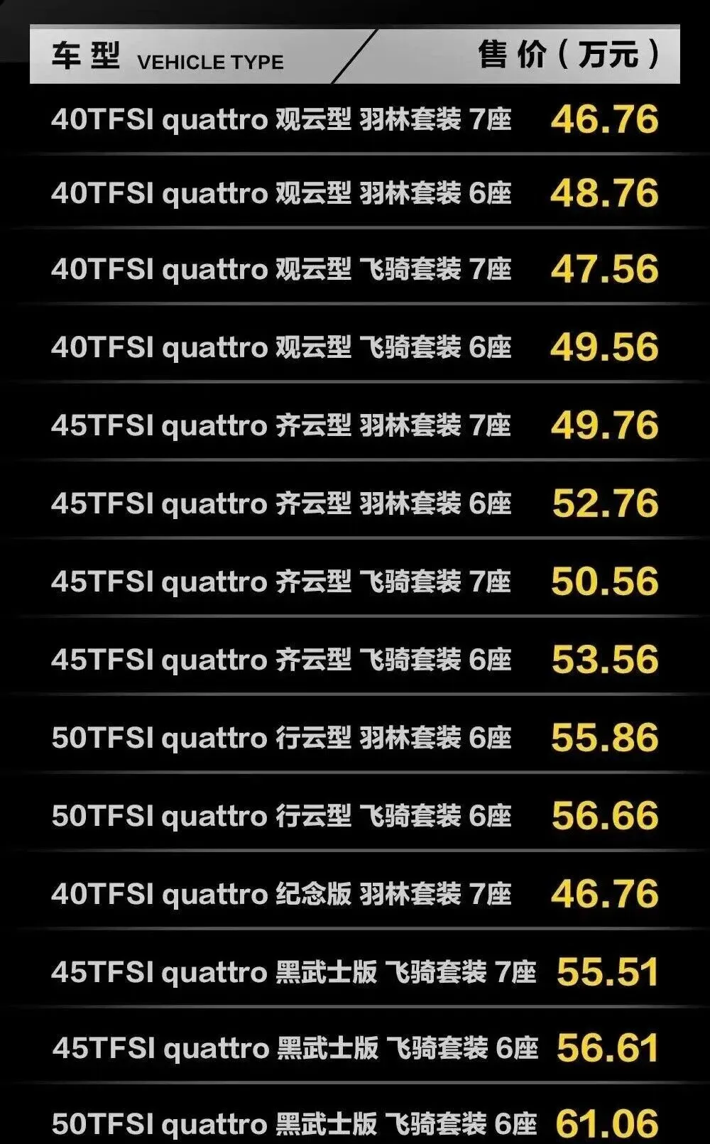 2026款上汽奥迪Q6上市了,14款配置,46.76万到61.06万的价格区间。