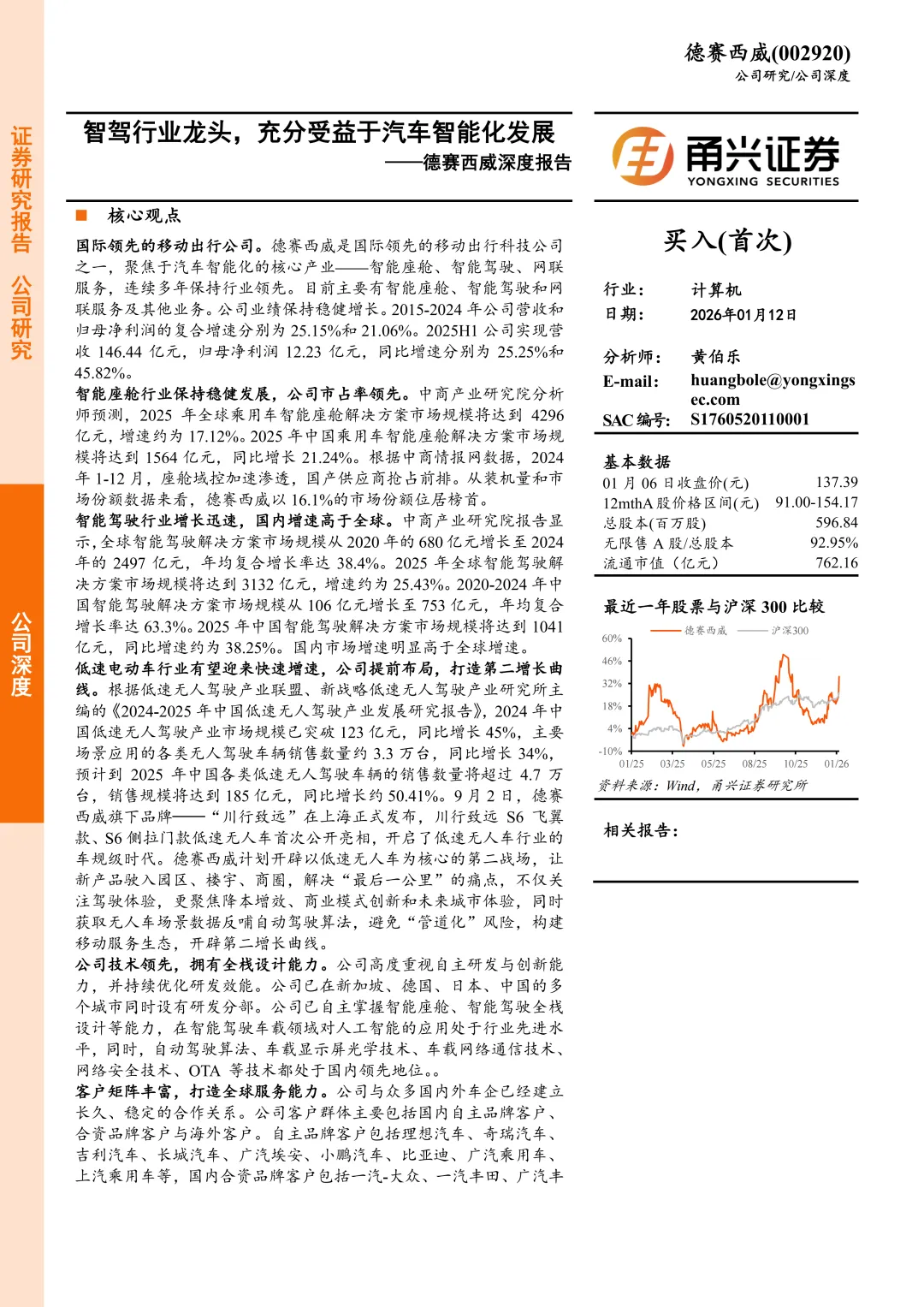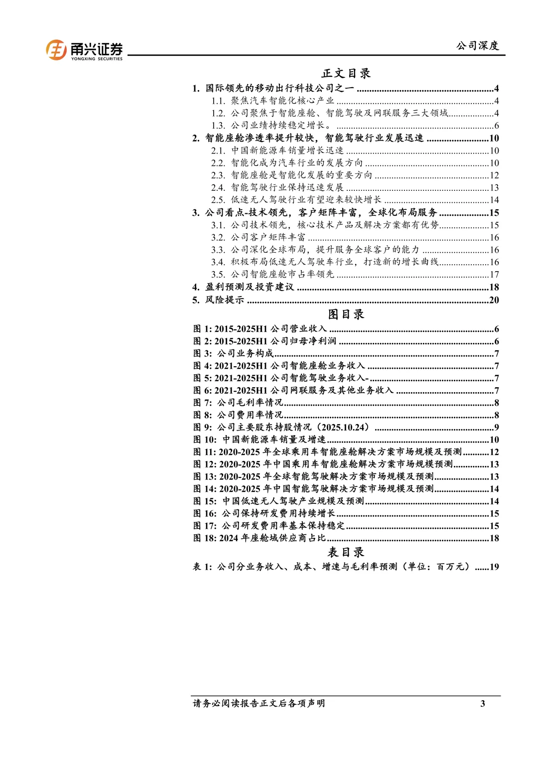 首次覆盖,给予“买入”评级。公司是国际领先的移动出行科技公司之一,有望充分受益于汽车智能化渗透率的提升。同时公司积极布局低速无人车第二增长曲线,积极布局海外市场,提升全球服务能力。我们预计公司2025-2027年归母净利润分别为25.23亿元、32.32亿元、41.56亿元,同比增速分别为25.8%、28.1%和28.6%,EPS分别为4.23元/股、5.41元/股和6.96元/股,对应1月6号收盘价137.39元,PE分别为32.51倍、25.37倍和19.73倍。首次覆盖,我们给予“买入”评级。