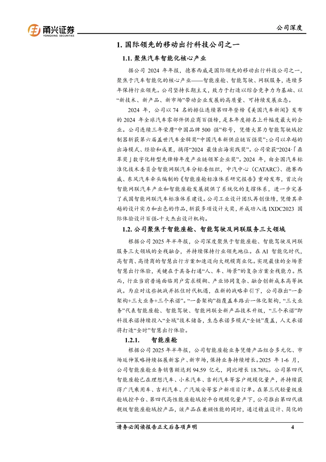 公司技术领先,拥有全栈设计能力。公司高度重视自主研发与创新能力,并持续优化研发效能。公司已在新加坡、德国、日本、中国的多个城市同时设有研发分部。公司已自主掌握智能座舱、智能驾驶全栈设计等能力,在智能驾驶车载领域对人工智能的应用处于行业先进水平,同时,自动驾驶算法、车载显示屏光学技术、车载网络通信技术、网络安全技术、OTA等技术都处于国内领先地位。。