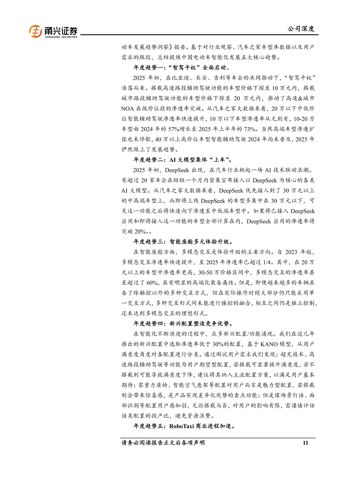 低速电动车行业有望迎来快速增速,公司提前布局,打造第二增长曲线。根据低速无人驾驶产业联盟、新战略低速无人驾驶产业研究所主编的《2024-2025年中国低速无人驾驶产业发展研究报告》,2024年中国低速无人驾驶产业市场规模已突破123亿元,同比增长45%,主要场景应用的各类无人驾驶车辆销售数量约3.3万台,同比增长34%,预计到2025年中国各类低速无人驾驶车辆的销售数量将超过4.7万台,销售规模将达到185亿元,同比增长约50.41%。9月2日,德赛西威旗下品牌——“川行致远”在上海正式发布,川行致远S6飞翼款、S6侧拉门款低速无人车首次公开亮相,开启了低速无人车行业的车规级时代。德赛西威计划开辟以低速无人车为核心的第二战场,让新产品驶入园区、楼宇、商圈,解决“最后一公里”的痛点,不仅关注驾驶体验,更聚焦降本增效、商业模式创新和未来城市体验,同时获取无人车场景数据反哺自动驾驶算法,避免“管道化”风险,构建移动服务生态,开辟第二增长曲线。
