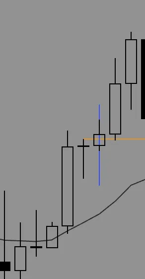 在反转确定的前提下,大阳线次日收了一根带有长下引线的十字星,并且最高点没有超过前高点,具备回调突破买入的条件,在次日可以挂stop order超过前日最高点买,止损挂在十字星最低点。