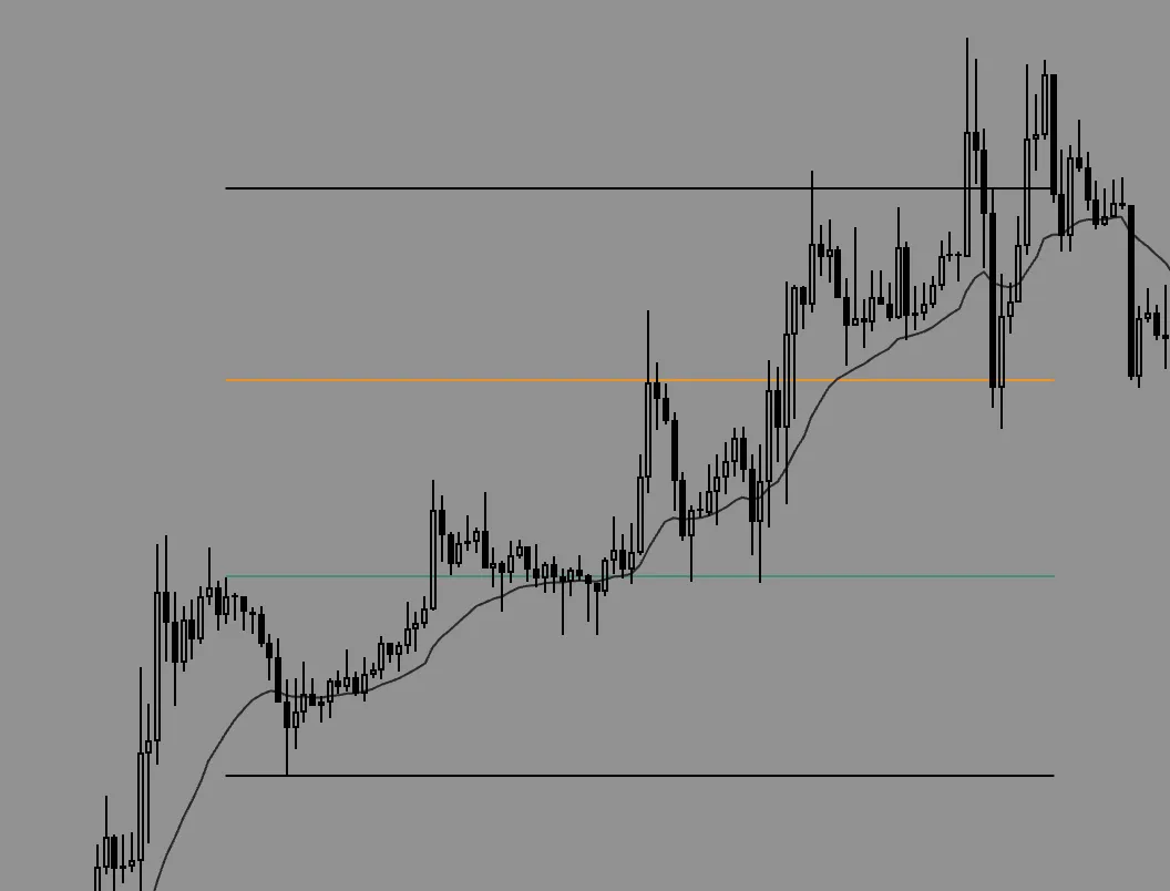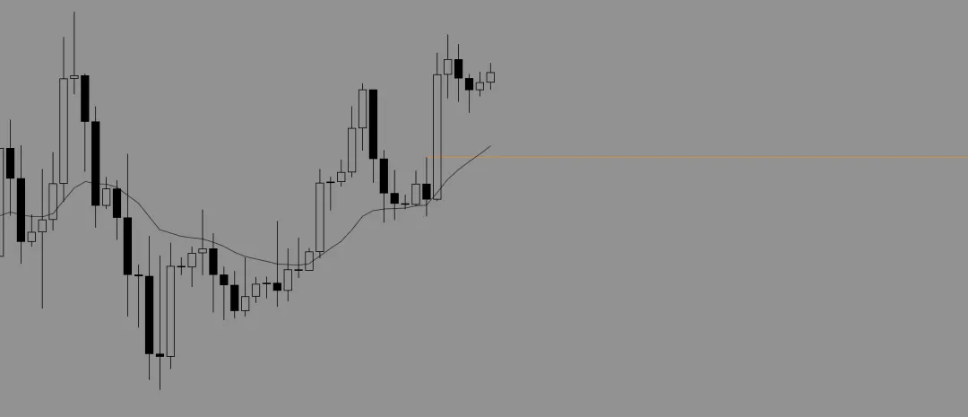 一小时细节:可以看到在触及到绿色线一倍盈亏比回调到了入场价附近,但是考虑到信号k线是如此的窄,拿到两倍是合理的,后面价格也顺利达到目标位