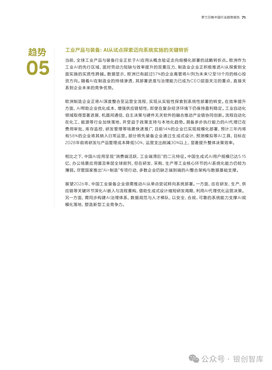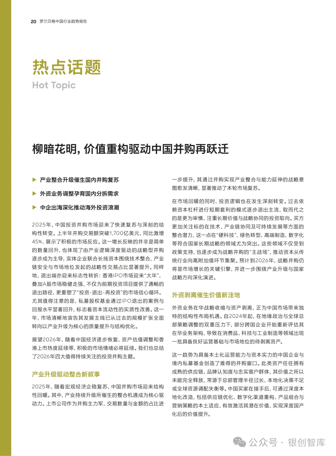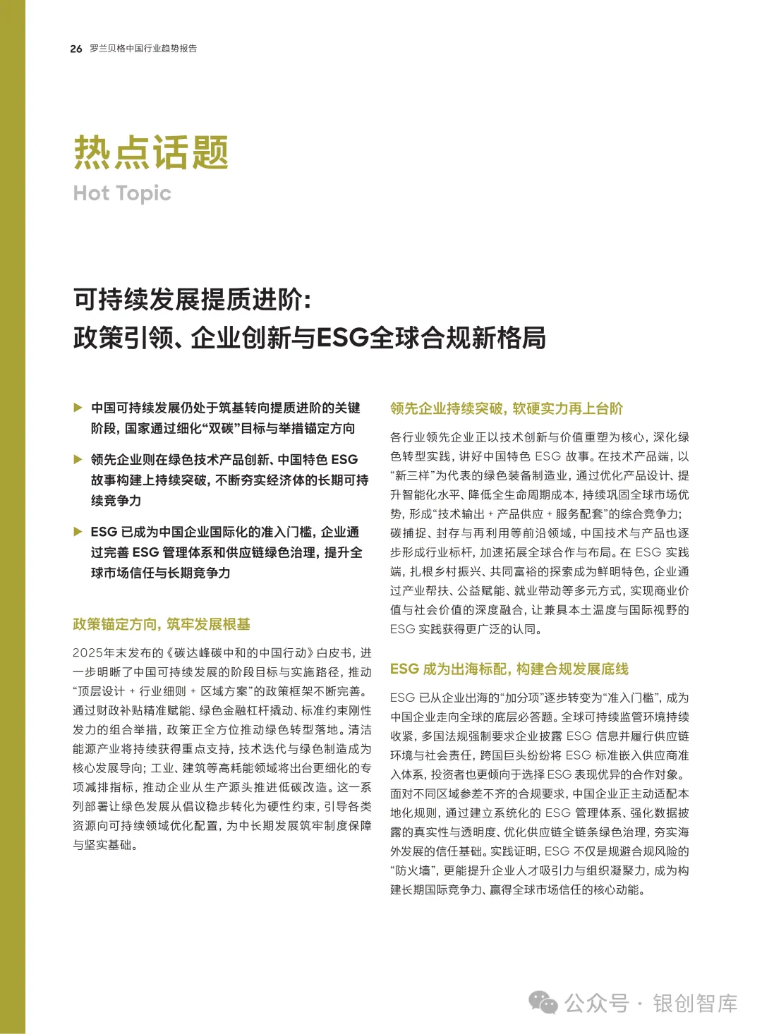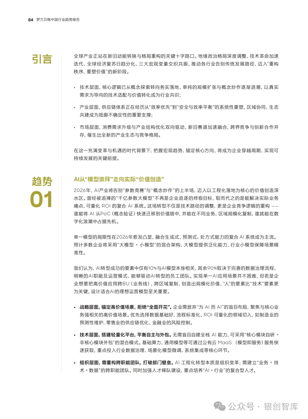 《预见 2026:中国行业趋势报告》是罗兰贝格推出的年度特别报告,立足 2026年“十五五”规划开局的关键节点,聚焦全球新秩序下中国经济的转型与发展。报告涵盖宏观发展格局、五大热点话题及汽车、大健康、能源、高科技等多个核心行业,通过深度分析国内外环境变化与产业变革逻辑,为企业、政府及行业参与者提供前瞻性洞察与务实解决方案,助力把握时代机遇、应对复杂挑战。