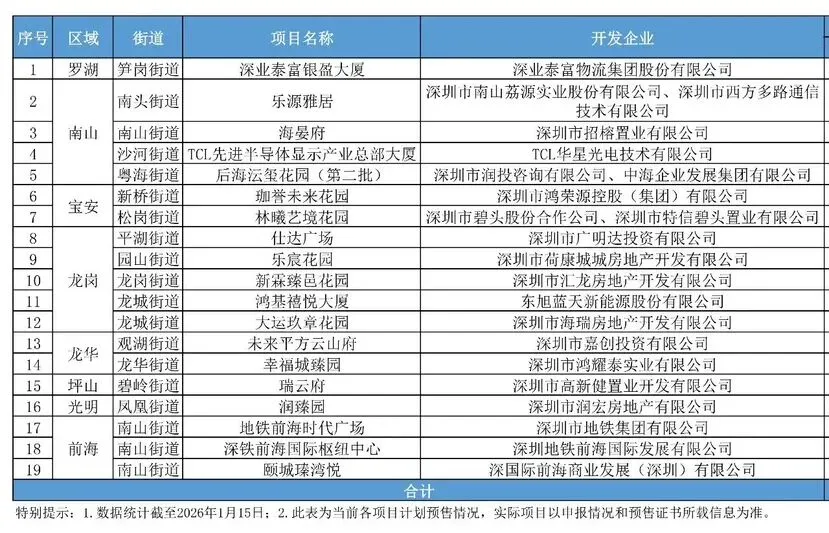 ● 一季度深圳计划入市商品房项目19个,供应房源7537套。
