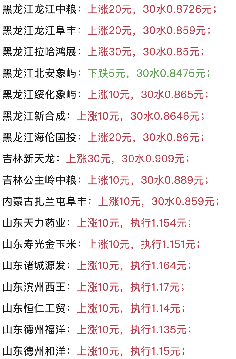 为啥这么说?看企业的采购策略就明白了——现在企业都是按需收粮,刚需缺口补上了就停手,只要粮源供应跟得上,绝不会轻易涨价。说白了,企业现在利润承压,能省则省,手里只要还有粮,就不会主动提价收粮。
