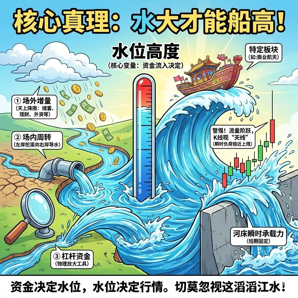 但需要强调的是:它们各自有不同的周期、约束与触发条件——外资看汇率与美债,理财资金看净值回撤,杠杆资金看监管与波动。而河床的宽度(对应板块的自由流通市值与市场深度),在短期内是相对固定的!