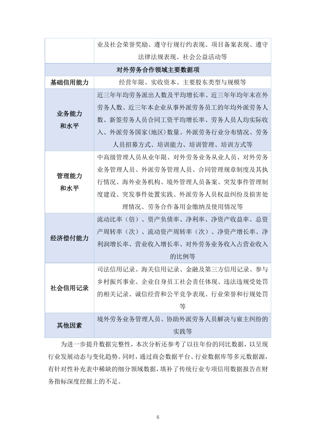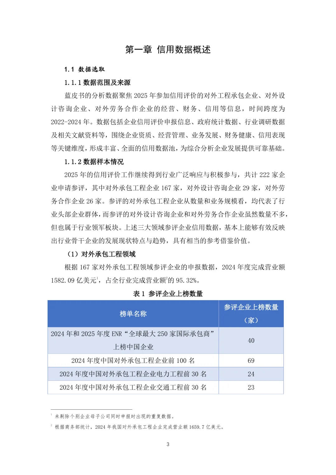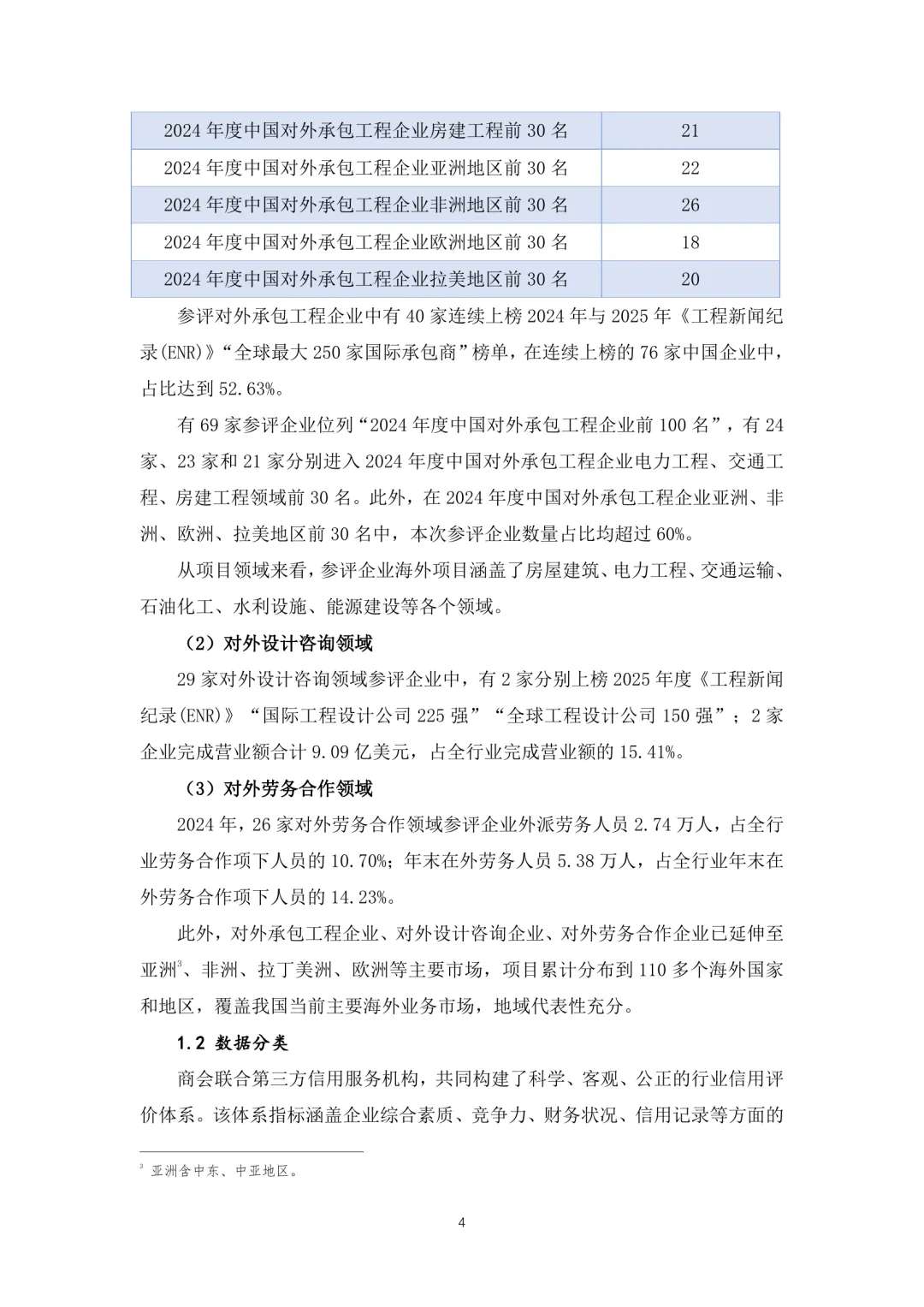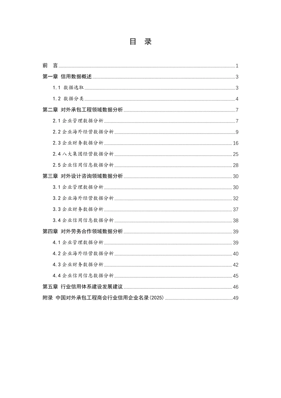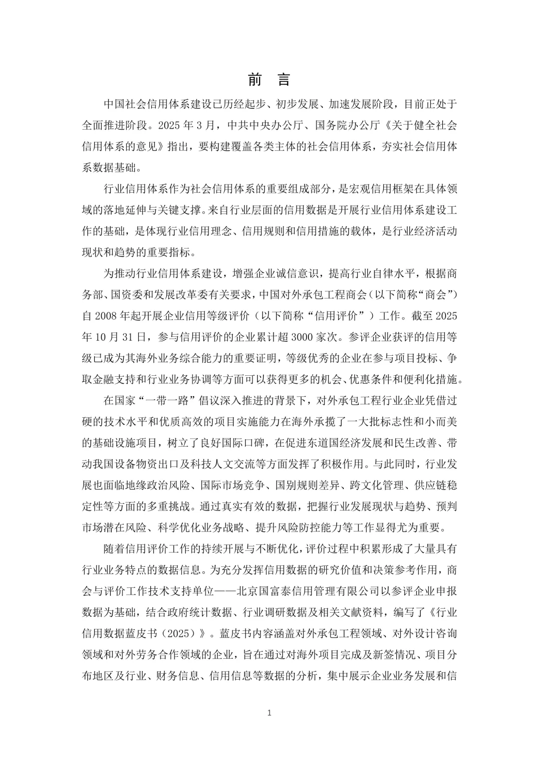 中国对外承包工程商会发布的《行业信用数据蓝皮书(2025)》全面梳理了近年来在对外承包工程、设计咨询及劳务合作等领域的信用数据情况。报告从数据来源与分类入手,系统分析了企业在管理、海外经营、财务状况以及信用信息等方面的表现。在对外承包工程领域,企业整体管理水平稳步提升,但海外经营仍面临一定风险,财务结构呈现多元化趋势,部分大型企业表现出较强的抗风险能力。设计咨询领域企业则在技术能力和项目执行方面持续优化,但市场集中度较高,中小型企业需加强自身竞争力。劳务合作领域企业普遍重视合规性建设,但在人员流动和成本控制方面存在挑战。当前行业信用体系建设已进入全面推进阶段,需进一步完善数据采集机制,强化信用评价体系,推动信用信息共享与应用。应注重提升企业信用意识,增强行业整体诚信水平,为高质量发展提供支撑。