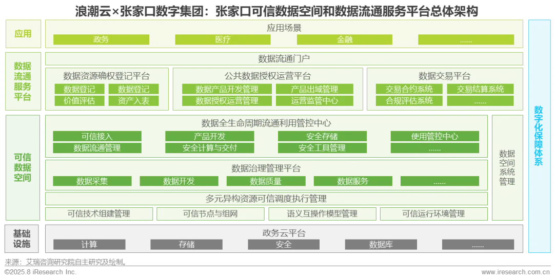 张家口可信数据空间和数据流通服务平台是河北省内发布的第一个城市级数据要素流通基础设施,由张家口数字集团作为建设运营主体,浪潮云提供技术服务。平台采用“一空间四平台一体系”架构,包括“1”个可信数据空间、“4”个数据流通服务平台和“1”个数字化保障体系,依托数据流通技术支撑底座,面向公共数据授权运营、企业数据资源登记确权、数据交易等业务提供数据流通支撑服务,为张家口市加快推进公共数据和行业企业等社会数据的价值化工作提供坚实支撑。