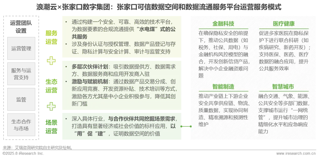 城市可信数据空间以政务云基础设施为基石,允许各类数据通过连接器实现可信接入,并构建包含安全存储、加密传输、身份管理、存证溯源等能力的数据流通利用支撑底座。数据运营管理平台负责数据资源目录、参与主体准入、可信连接器治理及全局运行监控,数据开发利用平台聚焦于数据产品的加工、交易、授权与应用集成,两者协同运作,最终服务于政务服务、普惠金融、医疗健康等多元化应用场景。