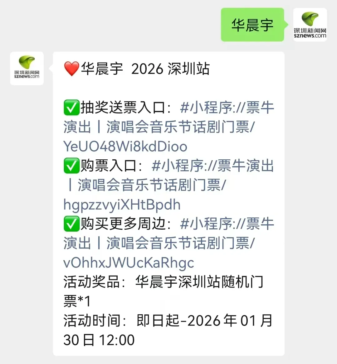 2026年1月28日10:00前完成上述操作的用户即有机会获得水木年华深圳演唱会门票一张