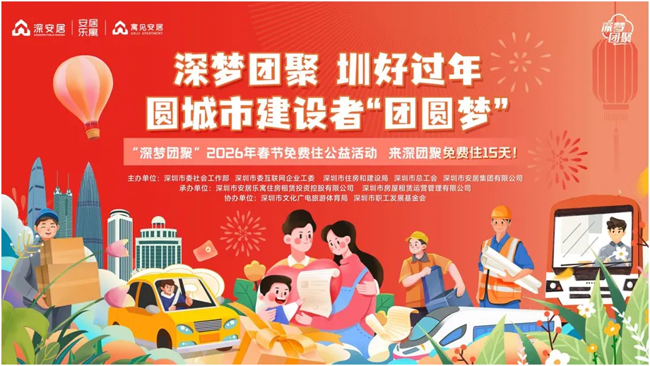 ● “深梦团聚,圳好过年”——2026年春节免费住活动正式启动,500套“春节免费团聚住房”,帮助留深建设者家属春节来深团聚。详情>>