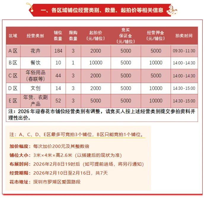 ● 罗湖:1月25日,爱国路迎春花市铺位开拍,将于2026年2月10日—2月16日与大家见面。
