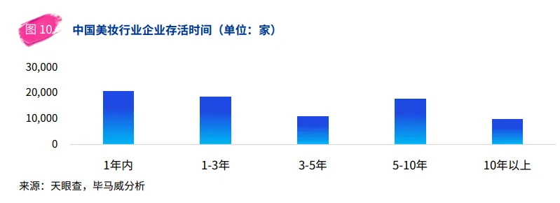 报告分析企业年龄结构发现,行业存在明显的“快进快出”特征: