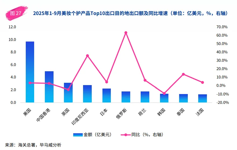 当大家还在关注东南亚市场时,美妆界出海黑马悄然出现:2025年前三季度,中国美妆对俄罗斯出口额同比增长63.6%。