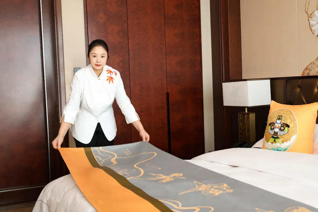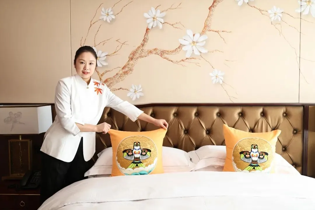 中式铺床看似简单,实则藏着极致的严谨,每一次甩单的平整、每一处包角的方正、每一道褶皱的对齐,都需手眼协调、力道精准。这份专业能力的沉淀,离不开酒店的悉心培养与用心赋能。日常工作里,酒店定期组织专业技能培训,搭建内部技能比拼平台,让我们在交流切磋中查漏补缺;遇到操作难点时,领导与资深同事耐心指导拆解,从动作规范到细节把控逐一点拨,帮我理清思路、突破瓶颈。正是酒店给予的成长沃土与精准指导,让我能沉下心深耕技能,不断打磨专业本领,夯实前行根基。