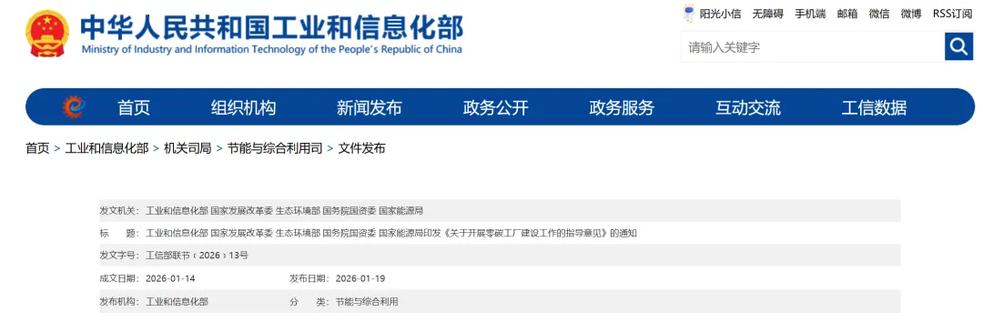 为贯彻落实国务院办公厅《制造业绿色低碳发展行动方案(2025—2027年)》,深挖工业和信息化领域节能降碳潜力,带动重点行业领域减碳增效和绿色低碳转型,培育发展新质生产力,工业和信息化部、国家发展改革委、生态环境部、国务院国资委、国家能源局等五部门近日联合印发《关于开展零碳工厂建设工作的指导意见》(工信部联节﹝2026﹞13号,以下简称《指导意见》)。工业和信息化部节能与综合利用司负责同志就《指导意见》出台的背景和意义、主要内容等回答了记者的提问。