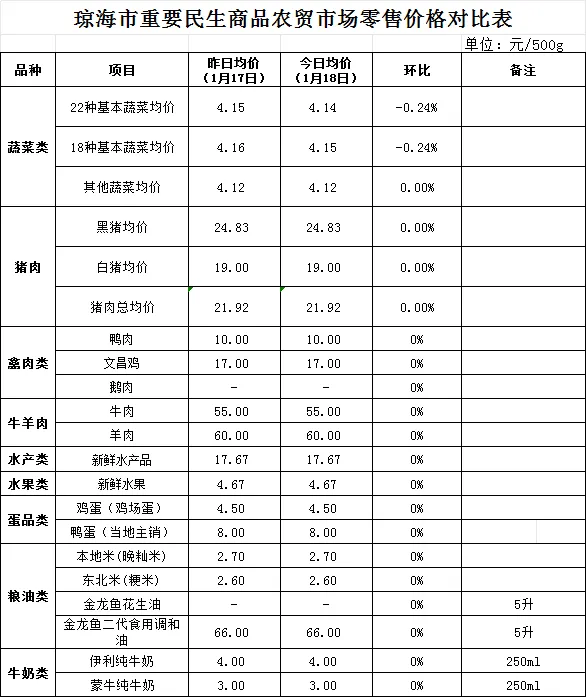 琼海市价格监测日报