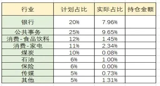 首先我把持仓,按照计划中的行业做了整个投资比例的划分