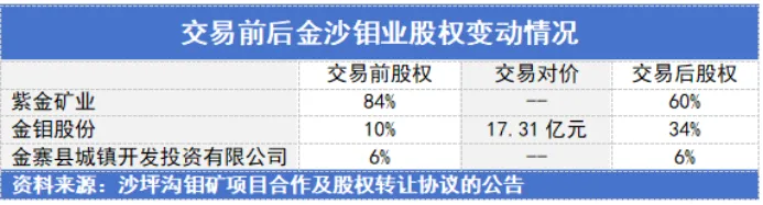 不过,就在获批当日,紫金矿业与金钼股份签署《合作意向书》,以17.31亿元对价主动转让金沙钼业24%股权。