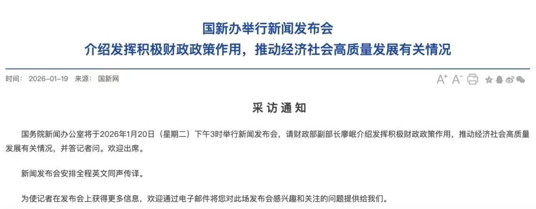 明日下午3时收盘后,国新办将举行新闻发布会,请财政部副部长廖岷介绍发挥积极财政政策作用,推动经济社会高质量发展有关情况