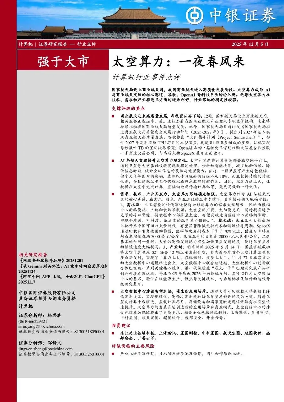 >计算机行业事件点评:太空算力:一夜春风来
