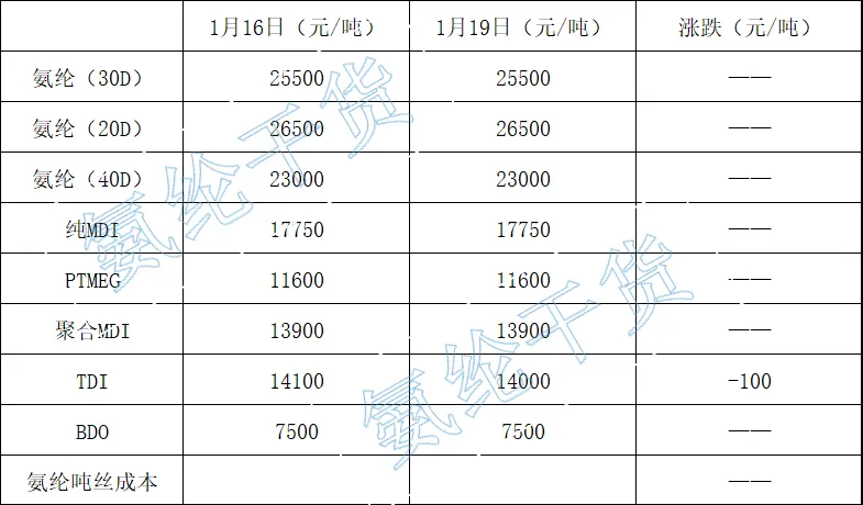 1、2026.1.19氨纶产业链主流报价(仅供参考,以实际成交价格为准):
