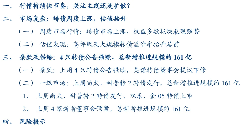 风险提示:正股波动较大、转债估值压缩、正股业绩增长不及预期、外围市场波动等。