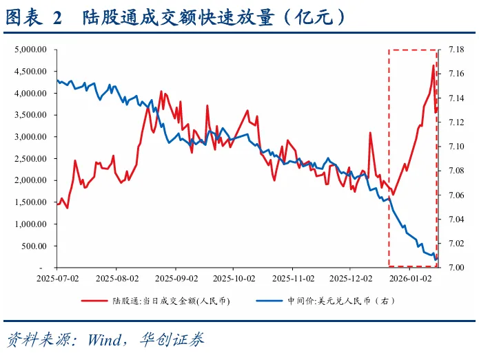 权益市场开门红,关键在于资金支撑。2026年开年已完整交易两周,权益市场行情强势,主要受益于资金流动性加持,一方面是两融余额扩张加速,另一方面人民币自2025年底升值,北向资金连续净流入,成交额快速放量,资金回流持续支撑权益市场形成“开门红”。