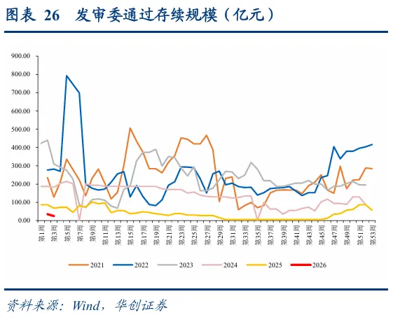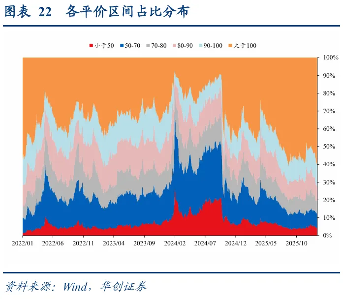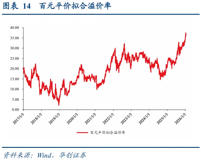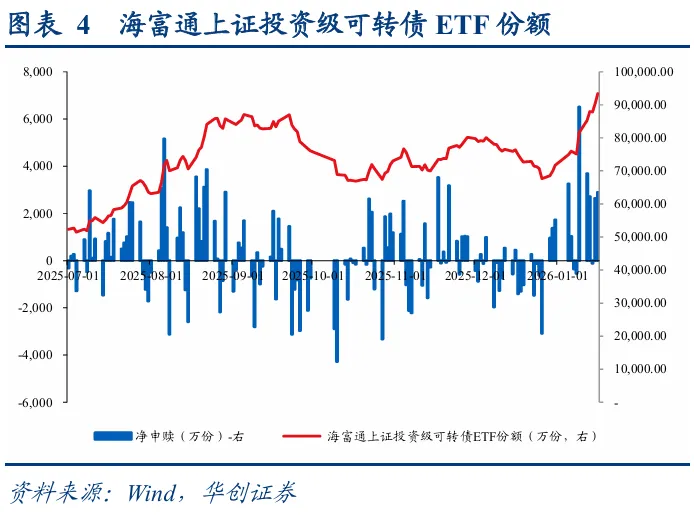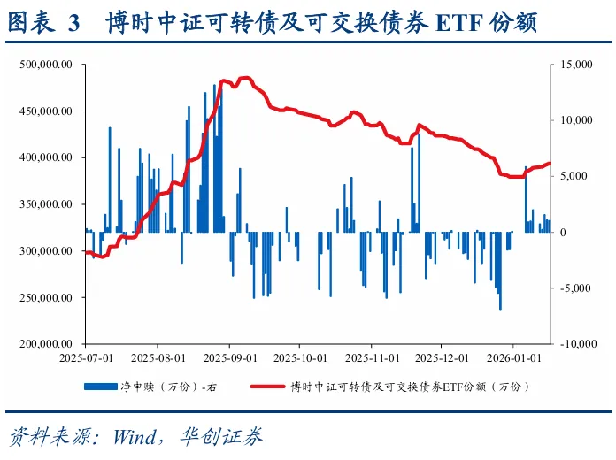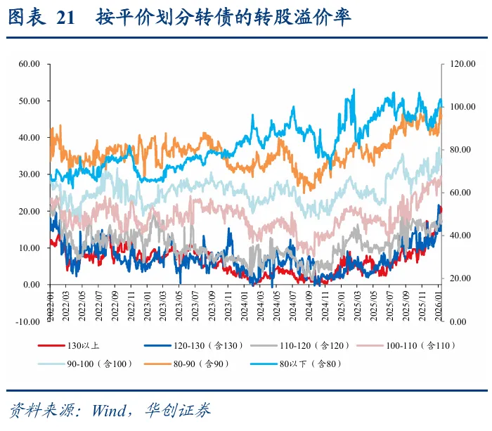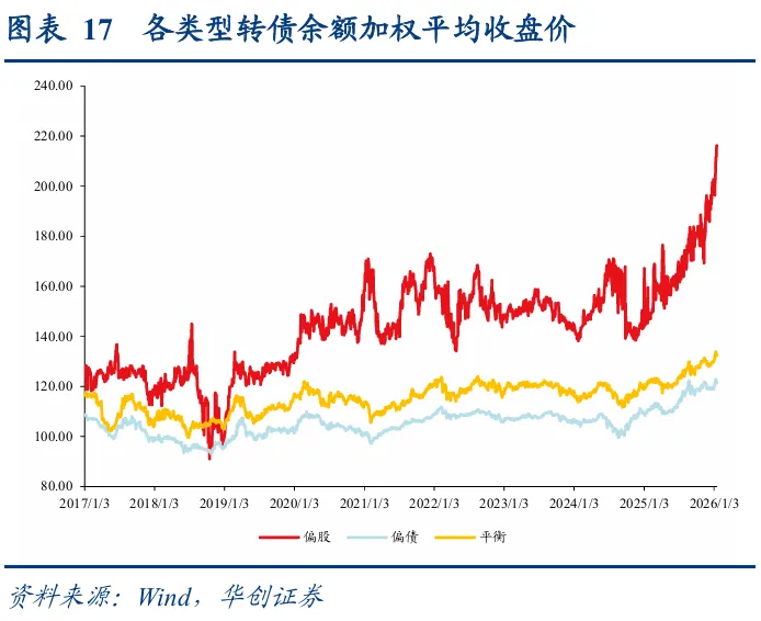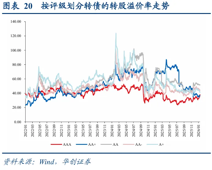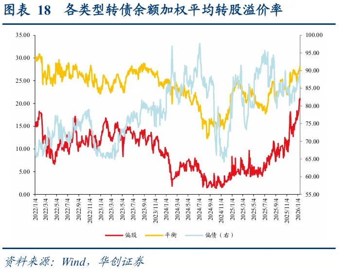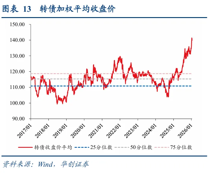 转债市场配置加力,估值再度新高。从各类转债投资者配置行为来看,12月底及年初普遍为增配时点,转债ETF同样份额扩张,需求侧加力叠加权益市场热度升温,转债百元拟合溢价率持续抬升至37.33%,较2025年底上升3.26pct,再度进入历史高点。
