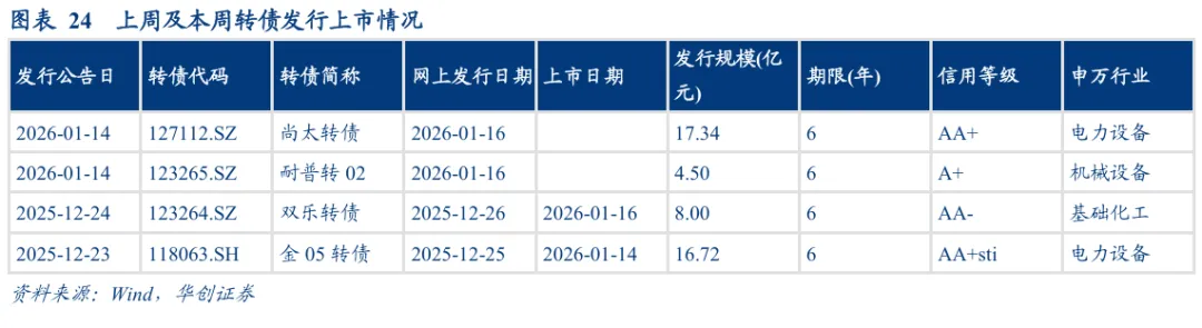 上周尚太、耐普转2发行,规模合计21.84亿元,双乐、金05转债上市,规模合计24.72亿元。