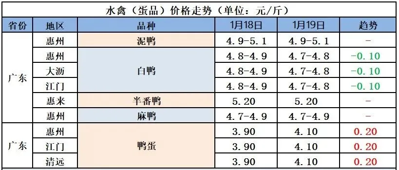 2026年1月20日全国鲜鸭蛋价格