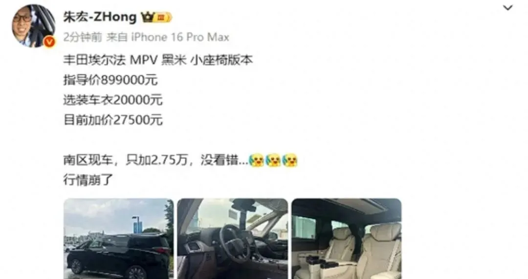 那个所谓的“2.75万加价”,更像是一个信号,一个打在公屏上的“急售”标签。它告诉我们,埃尔法经销商体系的信心,已经没有以前那么足了。以前是躺着赚钱,现在得坐起来,甚至得站起来吆喝。
